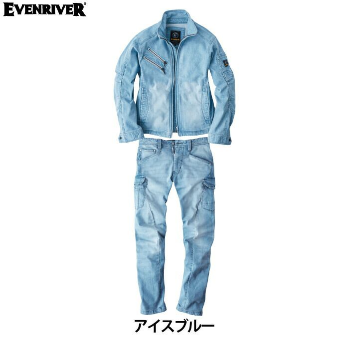 イーブンリバー 作業服 作業着 上下セット イーブンリバー EVENRIVER 作業服 上下セット USD807 ストレッチパウダーデニムブルゾン と USD802 ストレッチパウダーデニムカーゴ 秋冬用