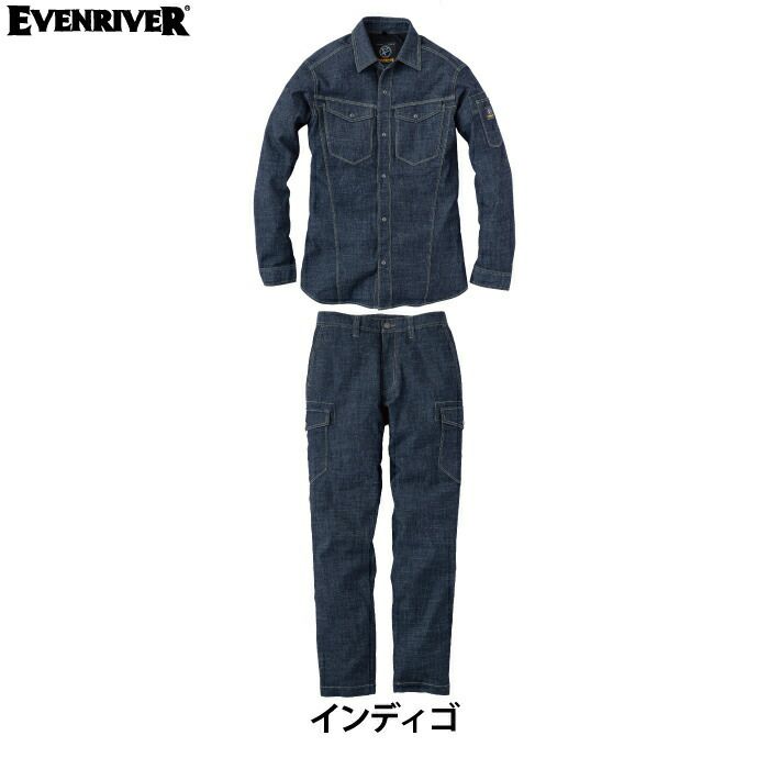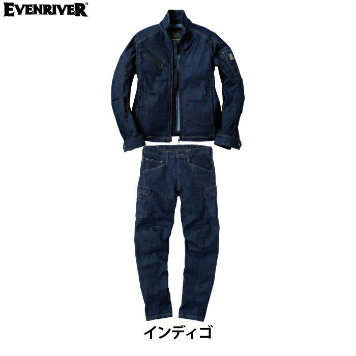 イーブンリバー 作業服 作業着 上下セット イーブンリバー EVENRIVER 作業服 上下セット USD907 ブルゾン と USD902 カーゴ おしゃれ ストレッチ デニム 秋冬用