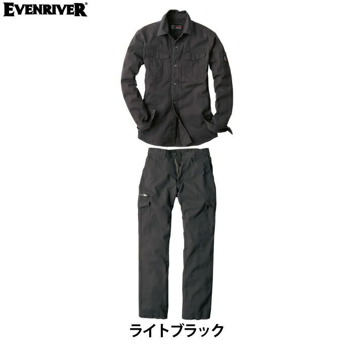 イーブンリバー 作業服 作業着 上下セット イーブンリバー EVENRIVER 作業服 上下セット SR-4006 スタンダードシャツ と SR-4002 スタンダードカーゴパンツ おしゃれ 春夏秋冬