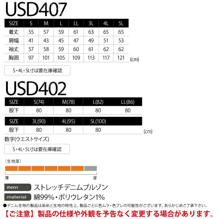イーブンリバー 作業服 作業着 上下セット イーブンリバー EVENRIVER 作業服 上下セット USD407 ストレッチデニムブルゾン と USD402 ストレッチデニムカーゴ おしゃれ 秋冬用