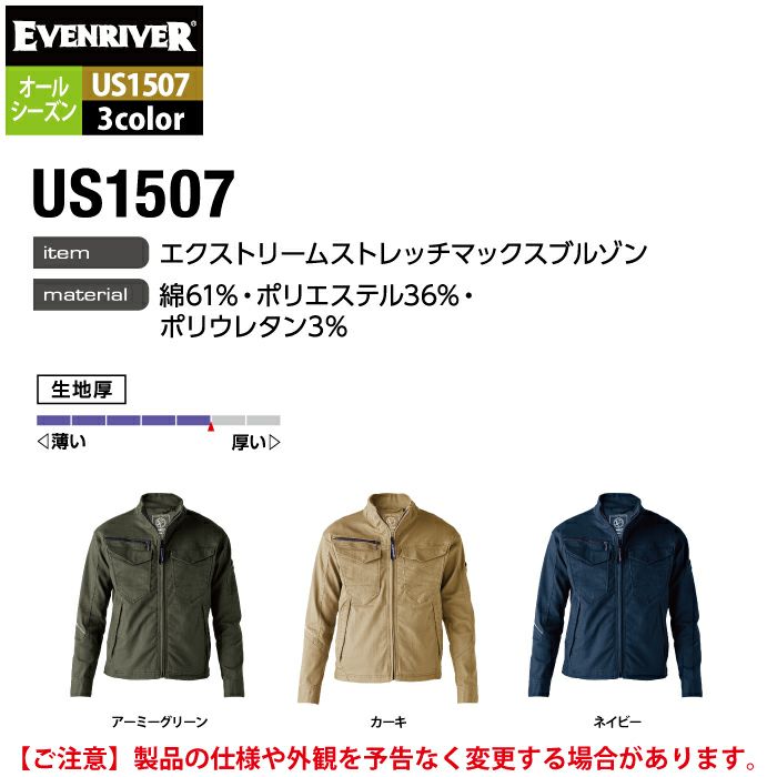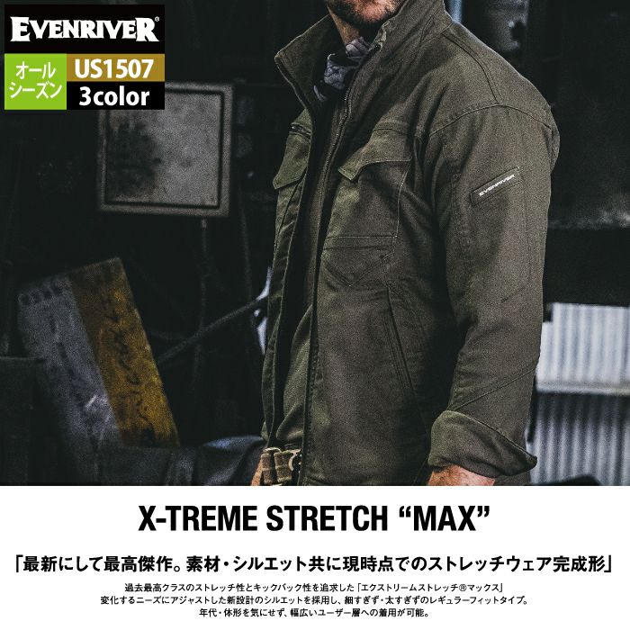 イーブンリバー 作業服 作業着 作業ズボン イーブンリバー EVENRIVER 作業服 US1507 エクストリームストレッチマックスブルゾン S-LL オールシーズン 秋冬 作業着