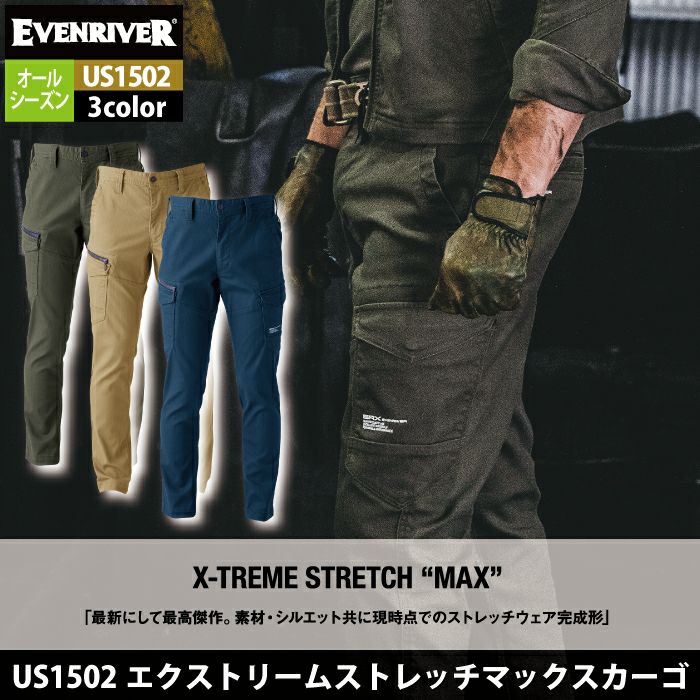 イーブンリバー 作業服 作業着 作業ズボン イーブンリバー EVENRIVER 作業服 作業ズボン US1502 エクストリームストレッチマックスカーゴ S-4L オールシーズン 秋冬 作業着