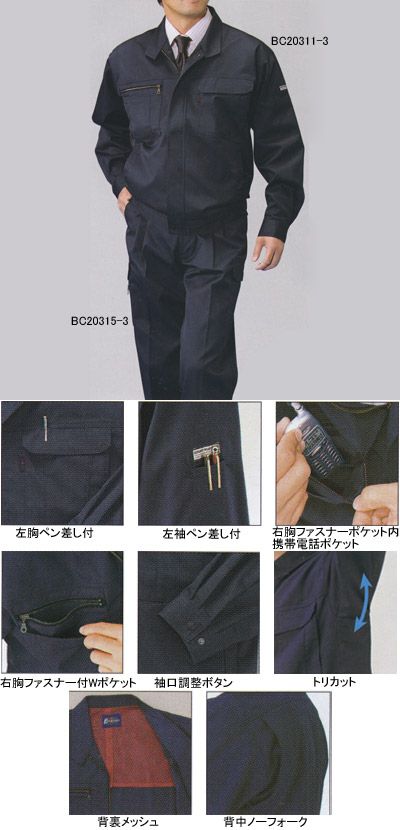 作業服 サンエス BC20311 長袖ジャンパー SS-LL