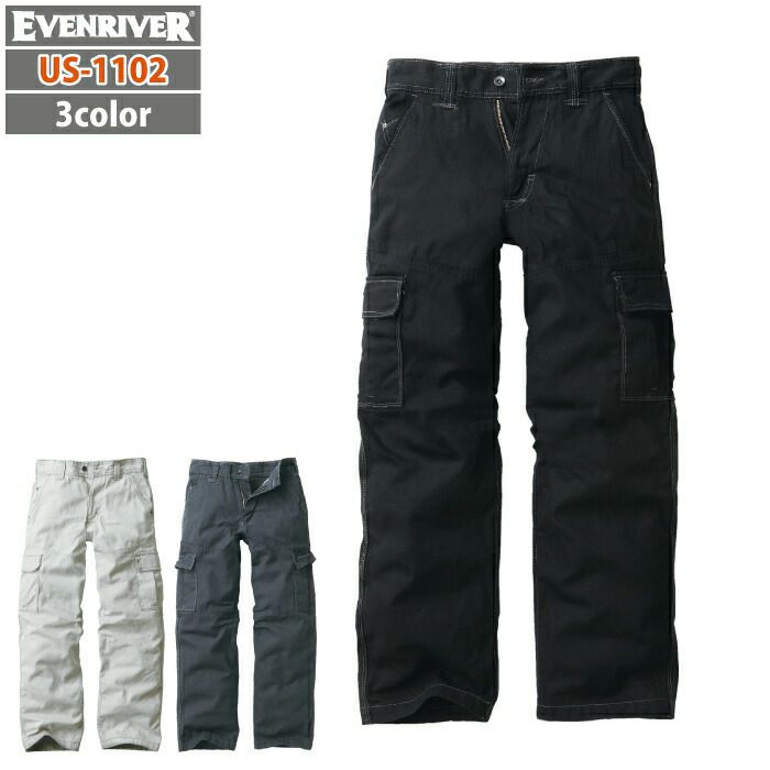 イーブンリバー 作業服 作業着 作業ズボン イーブンリバー EVENRIVER 作業服 作業ズボン US-1102 フィッシャーストライプカーゴ S-4L 秋冬用 作業着 おしゃれ