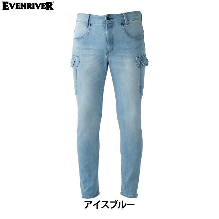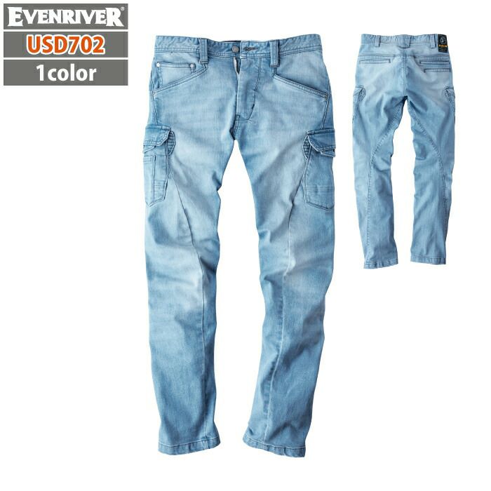 イーブンリバー 作業服 作業着 作業ズボン イーブンリバー EVENRIVER 作業服 作業ズボン USD802 ストレッチパウダーデニムカーゴ S-4L 秋冬用 作業着 おしゃれ