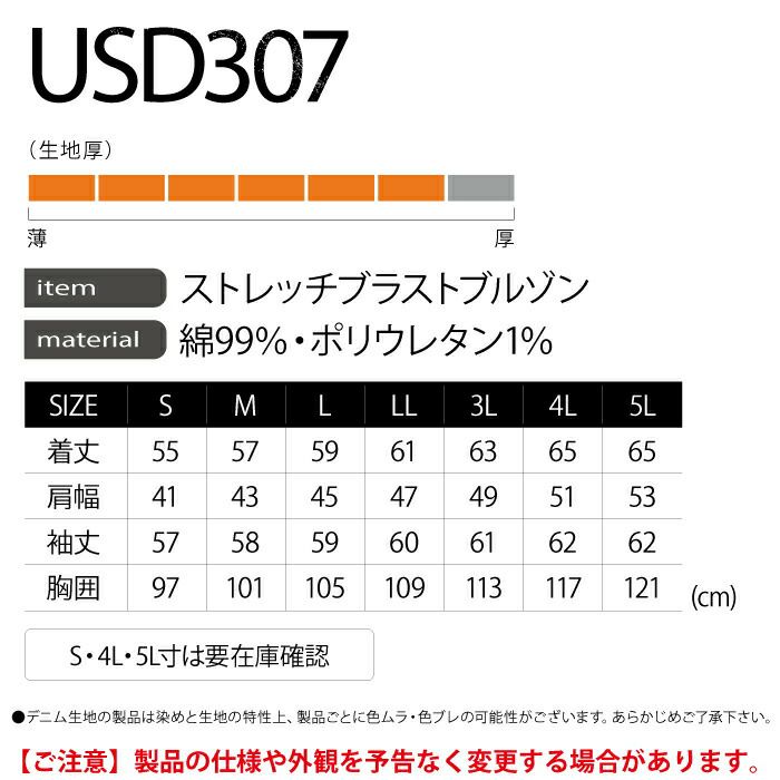 イーブンリバー 作業服 作業着 作業ズボン イーブンリバー EVENRIVER 作業服 USD807 ストレッチパウダーデニムブルゾン 5L 秋冬用 作業着 おしゃれ