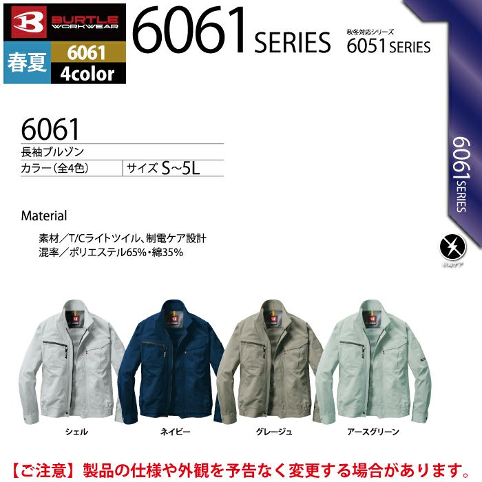 【keyword0323_workclothes】 作業着 作業服 ブルゾン 長袖 バートル BURTLE 作業着 6061 長袖ブルゾン S-LL 作業服 春夏