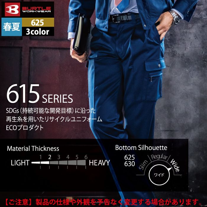バートル BURTLE 作業着 作業ズボン 625 ツータックカーゴパンツ 91-100 作業服 春夏