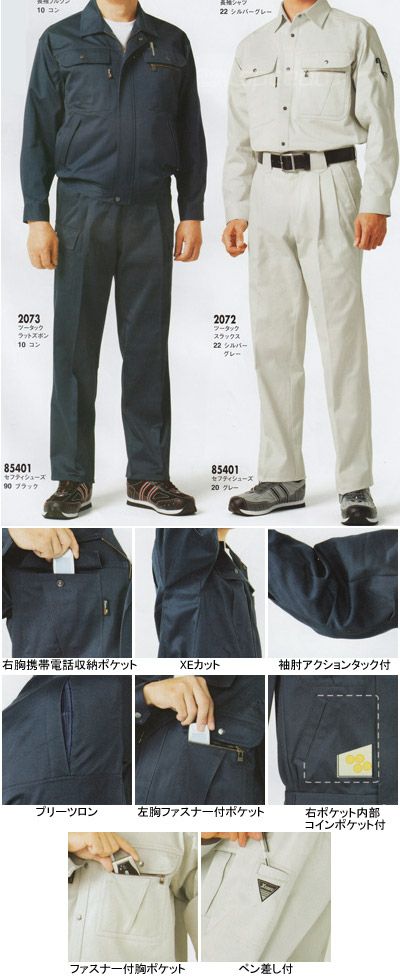 ツータック在庫無くなり次第ワンタックに変更 ジーベック XEBEC 作業服 2072 スラックス W70-W100 秋冬用 作業着