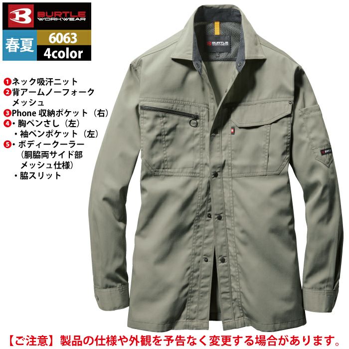 【keyword0323_workclothes】 作業着 作業服 長袖 シャツ バートル BURTLE 作業着 6063 長袖シャツ S-LL 作業服 秋冬