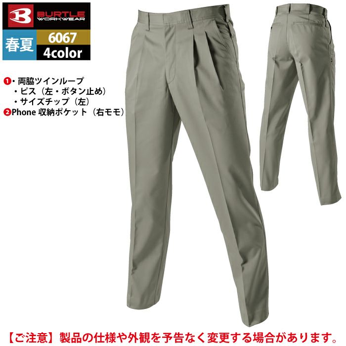【keyword0323_workclothes】 作業着 作業服 パンツ ズボン スラックス バートル BURTLE 作業着 作業ズボン 6067 ツータックパンツ 105-115 作業服 春夏