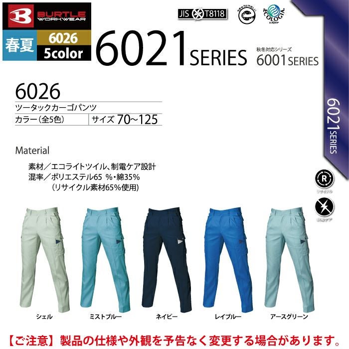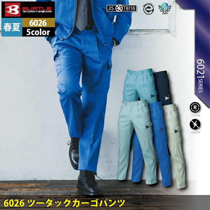 【keyword0323_workclothes】 作業着 作業服 ズボン パンツ カーゴパンツ バートル BURTLE 作業着 作業ズボン 6026 ツータックカーゴパンツ 70-88 作業服 春夏