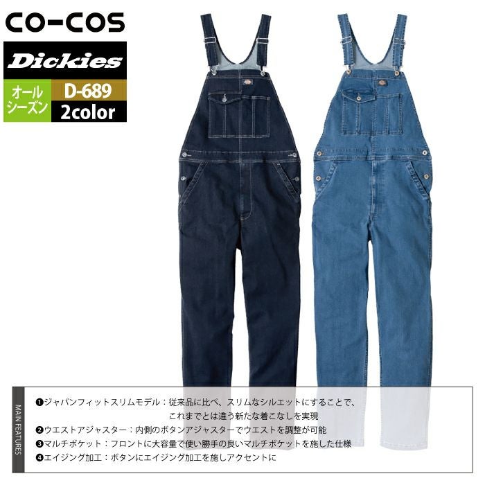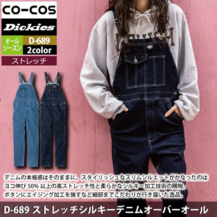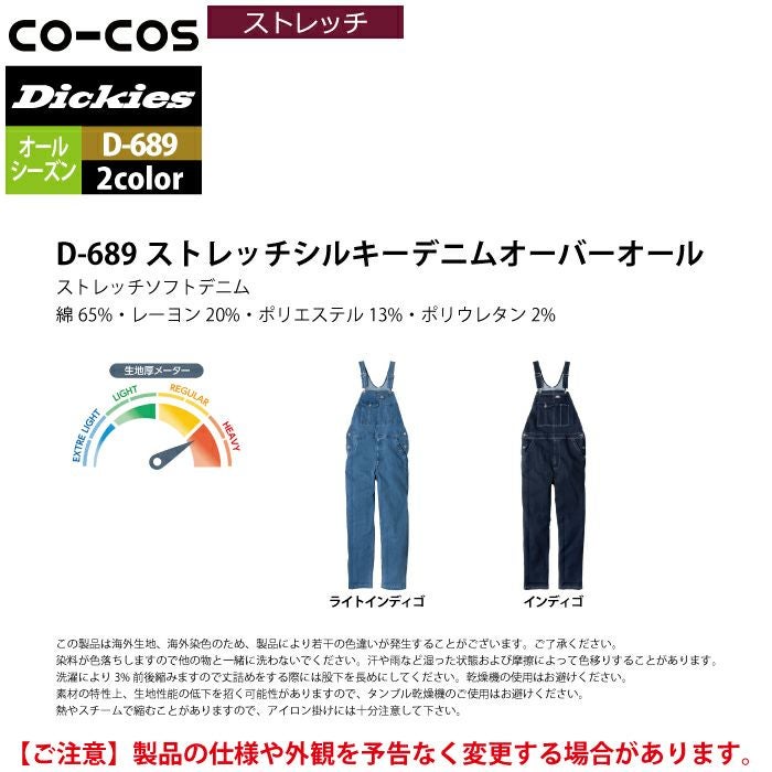ディッキーズ Dickies 作業服 作業着 作業ズボン ディッキーズ Dickies 作業服 作業着 D-689 ストレッチシルキーデニムオーバーオール XS-3XL