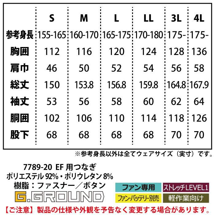 桑和 SOWA 作業服 作業着 作業ズボン 桑和 SOWA 作業服 7789-20 EF用つなぎ 4L 作業服 春夏用