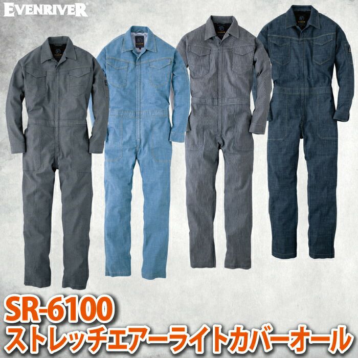 イーブンリバー 作業服 作業着 作業ズボン イーブンリバー EVENRIVER 作業服 SR-6100 ストレッチエアーライトカバーオール M-LL 春夏秋冬 作業着 おしゃれ