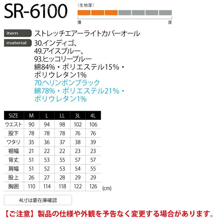 イーブンリバー 作業服 作業着 作業ズボン イーブンリバー EVENRIVER 作業服 SR-6100 ストレッチエアーライトカバーオール 4L 春夏秋冬 作業着 おしゃれ