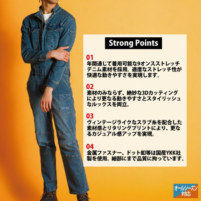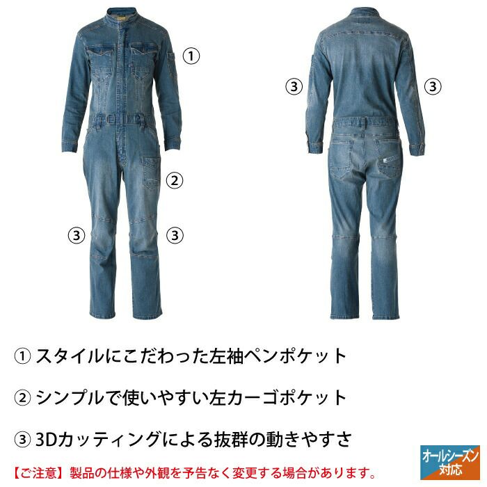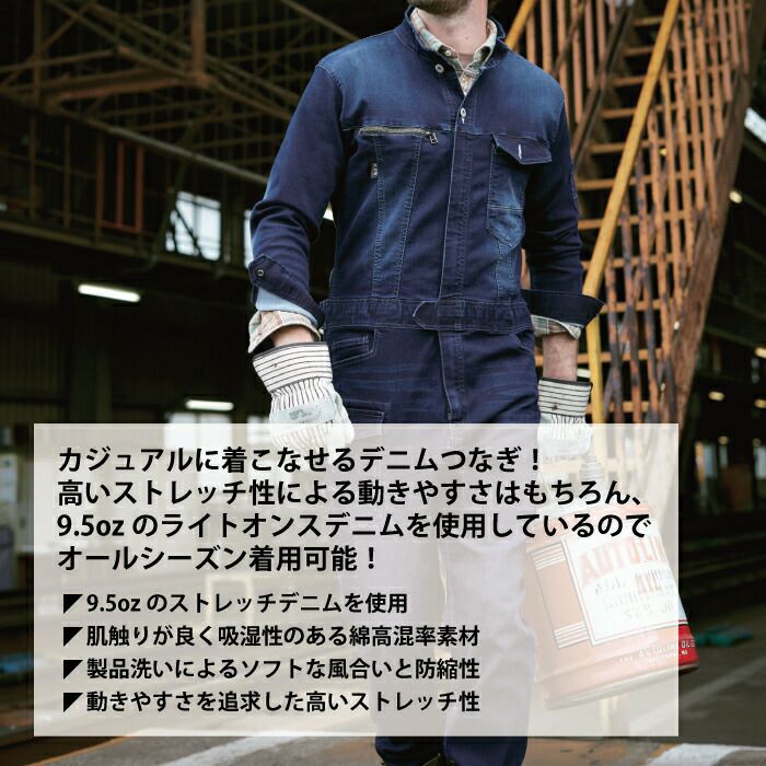 アイズフロンティア 作業服 作業着 作業ズボン アイズフロンティア 作業服 7264 3Dストレッチデニムオーバーオール S-4L 春夏秋冬