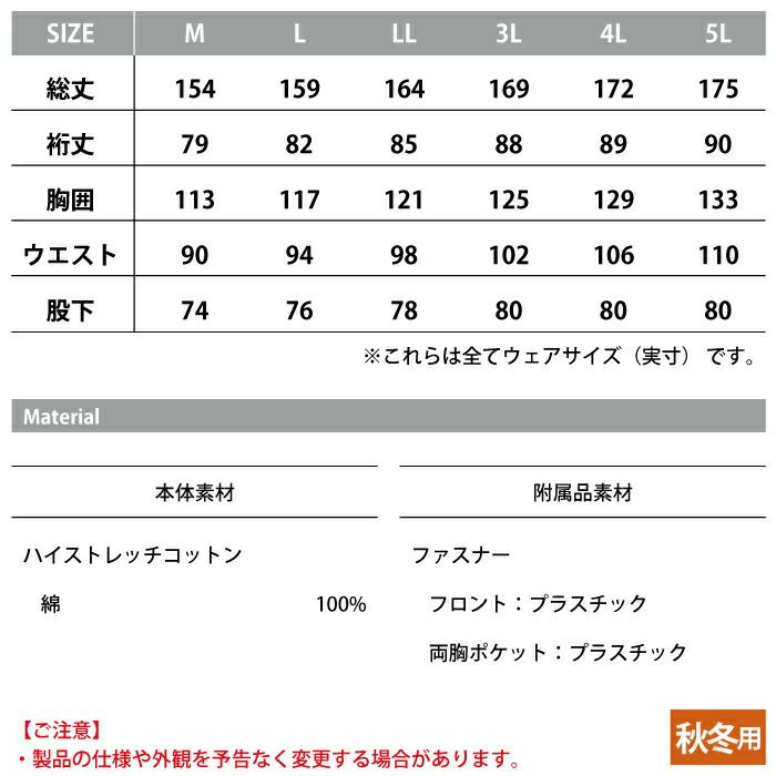 桑和 SOWA 作業服 作業着 作業ズボン 桑和 SOWA 作業服 秋冬用 2082-20 つなぎ 4L