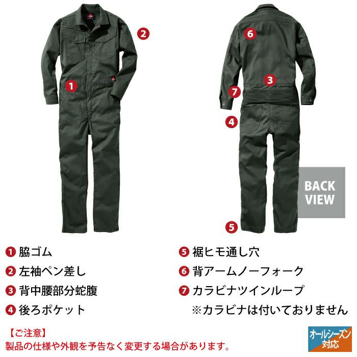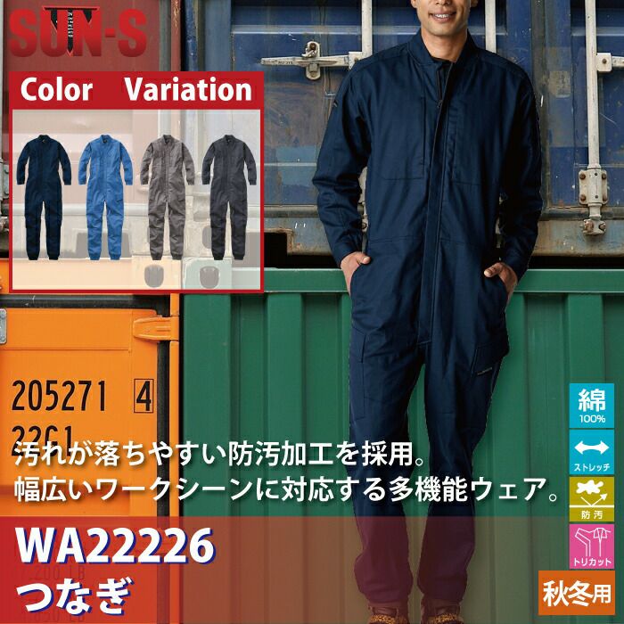 作業服 オールシーズン サンエス WA22226 つなぎ M-LL