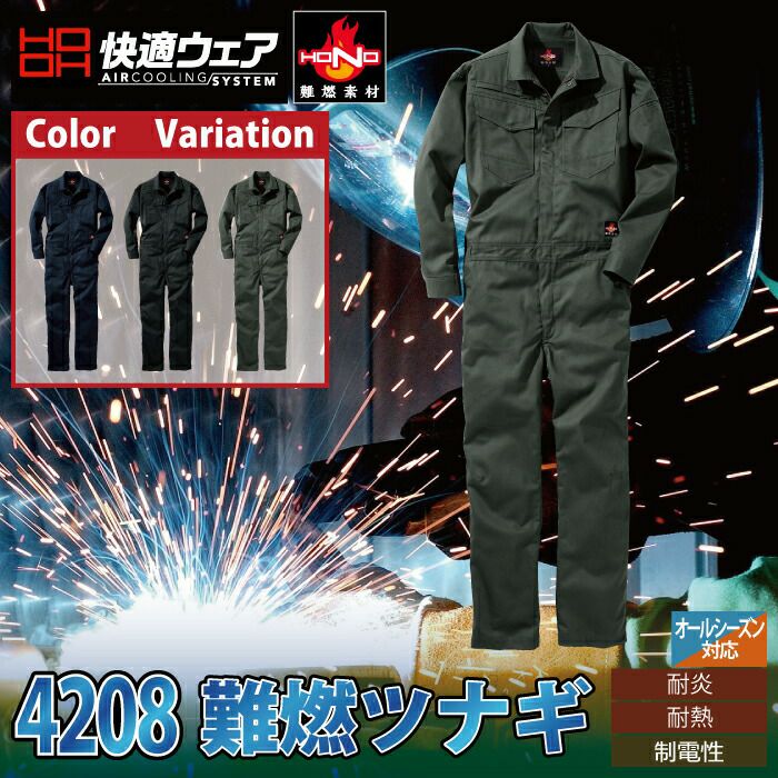 村上被服 HOOH 鳳凰 作業服 作業着 村上被服 HOOH 鳳凰 作業服 4208 難燃ツナギ S-3L