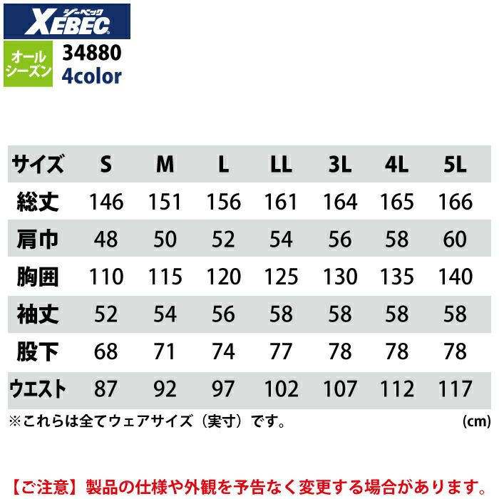 ジーベック XEBEC 作業服 作業着 作業ズボン ジーベック XEBEC 作業服 34880 続服 S-5L 秋冬 作業着