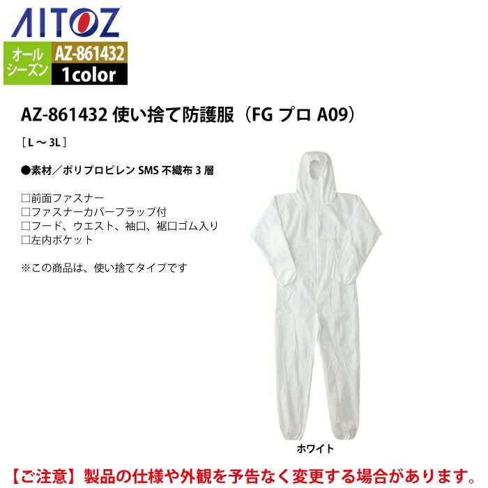 アイトス Aitoz 作業服 作業着 作業ズボン アイトス 作業服 作業着 Aitoz AZ-861432 使い捨て防護服(FGプロA09) L-3L