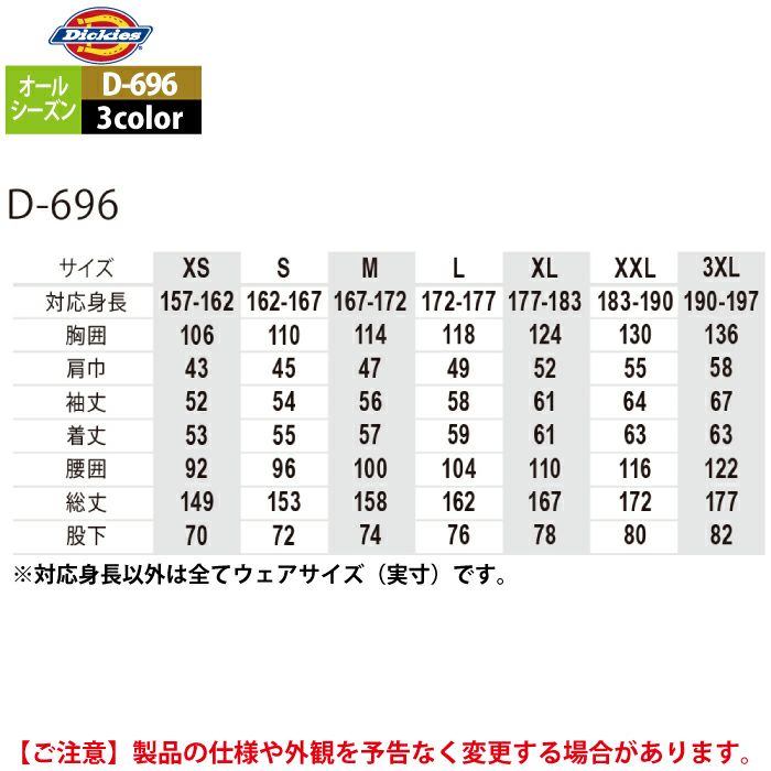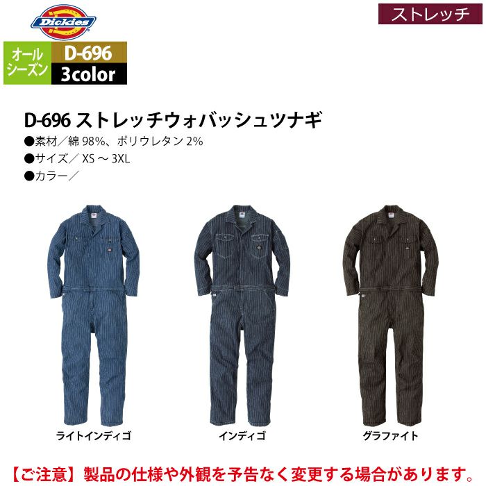 ディッキーズ Dickies 作業服 作業着 作業ズボン ディッキーズ Dickies 作業服 作業着 オールシーズン D-696 ストレッチウォバッシュツナギ XS-3XL