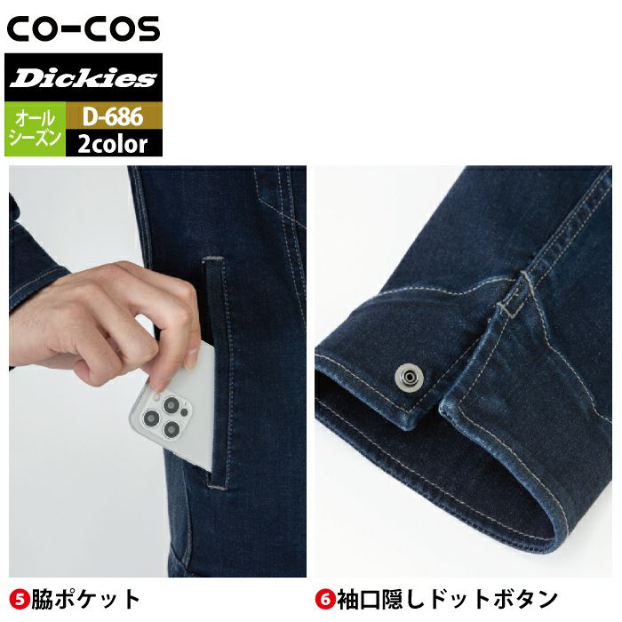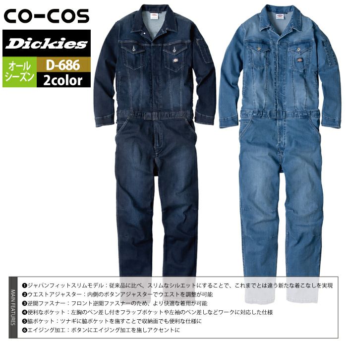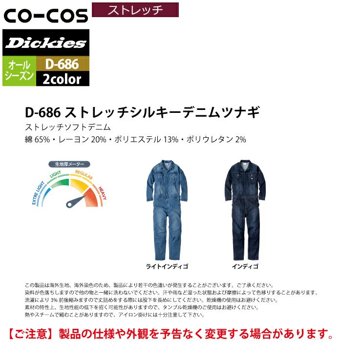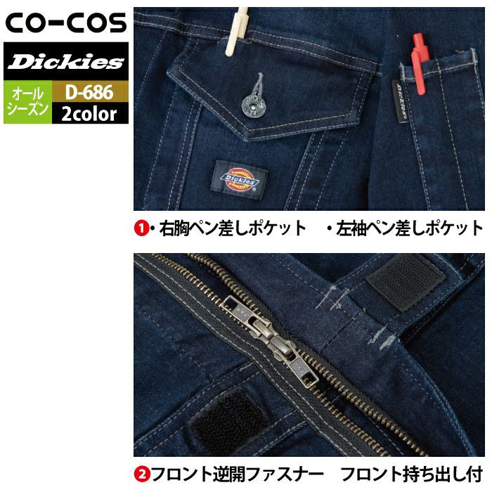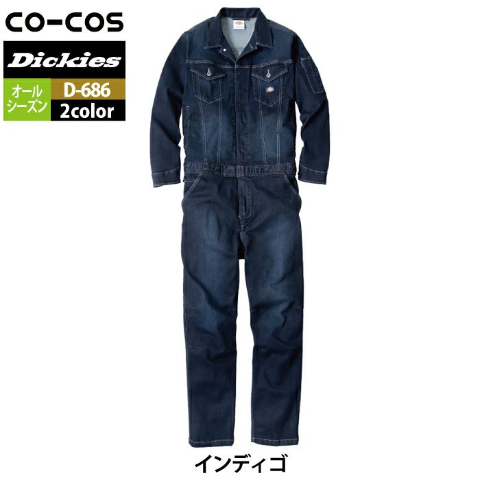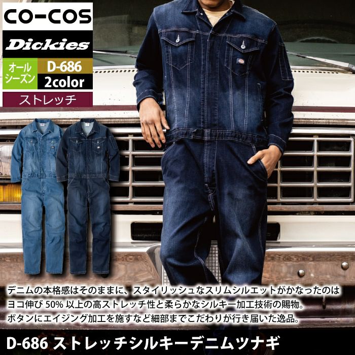ディッキーズ Dickies 作業服 作業着 作業ズボン ディッキーズ Dickies 作業服 作業着 D-686 ストレッチシルキーデニムツナギ XS-3XL