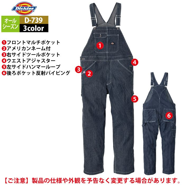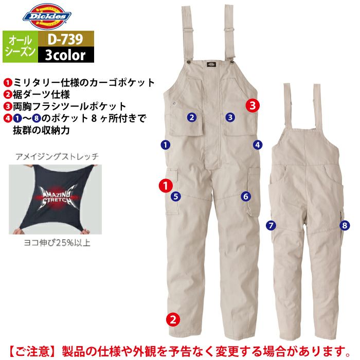 ディッキーズ Dickies 作業服 作業着 作業ズボン ディッキーズ Dickies 作業服 作業着 オールシーズン D-739 ストレッチオックスオーバーオールカーゴ XS-3XL
