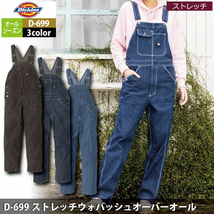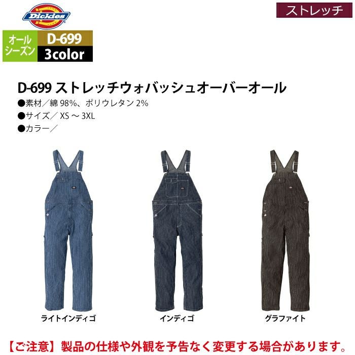 ディッキーズ Dickies 作業服 作業着 作業ズボン ディッキーズ Dickies 作業服 作業着 オールシーズン D-699 ストレッチウォバッシュオーバーオール XS-3XL