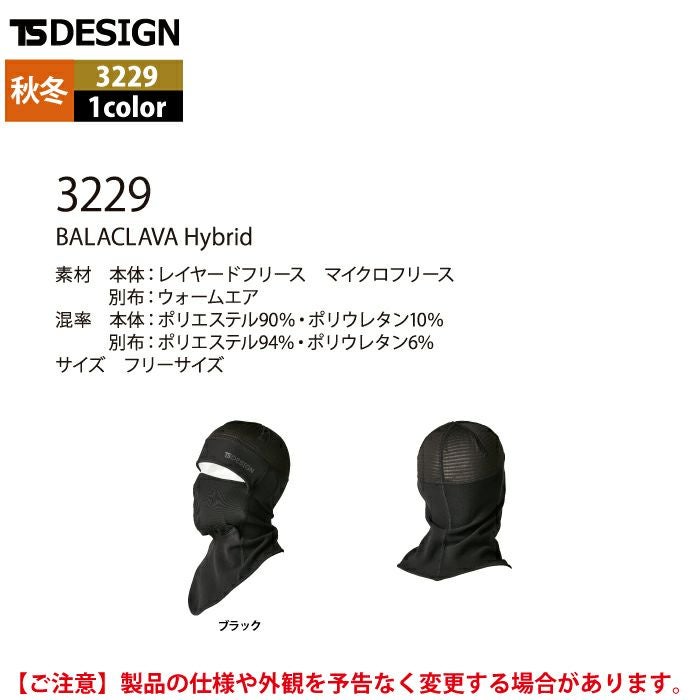 藤和 TSDESIGN 作業服 作業着 作業ズボン 藤和 TSDESIGN 作業服 インナー 3229 バラクラバHybrid F 秋冬 作業着
