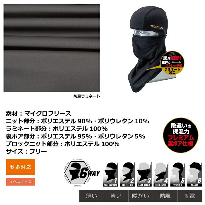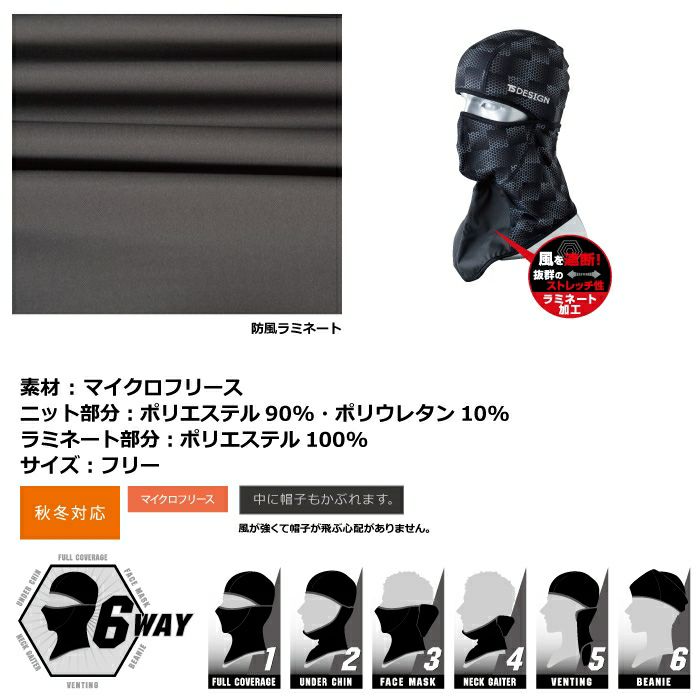 藤和 TSDESIGN 作業服 作業着 作業ズボン 藤和 TSDESIGN 作業服 84290 BALACLAVAPREMIUM(6WAYフェイスガード) F 作業服 作業着
