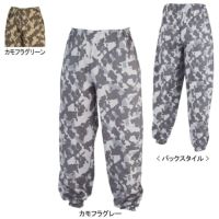 ●関連商品※10042ヤッケ●春夏用●素材:綿100% ●ウエストにゴム入り、サイドの空気穴、肌触りが良く吸湿性のある綿100% 素材●サイズ:F(ウエスト/~100、股下/82、わたり巾/38)、3L(ウエスト/~120、股下/82、わたり巾/41)、4L(ウエスト/~130、股下/82、わたり巾/44)●カラー:カモフラグレー、カモフラグリーン