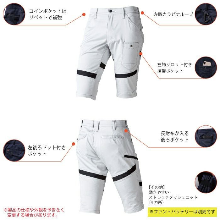 空調服 村上被服 HOOH 鳳凰 作業服 作業着 ファン付きウェア (服のみ) 村上被服 HOOH 鳳凰 作業服 作業ズボン V9588 スリムハーフパンツ(ストレッチ) SS-3L 春夏用