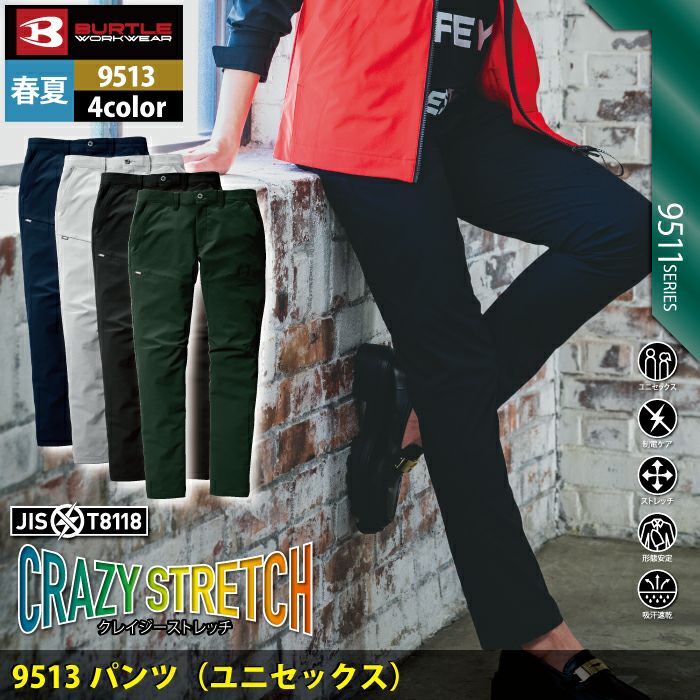 クレイジーストレッチ テーパードシルエット バートル BURTLE 作業着 作業ズボン 9513 パンツ 4L 作業服 春夏 2022新作 ストレッチ ユニセックス 制電 T8118 吸汗速乾 テーパード