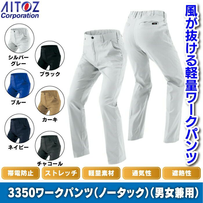 アイトス 作業服 作業着 Aitoz 春夏用 AZ-3350 ワークパンツ(ノータック)(男女兼用) 6L