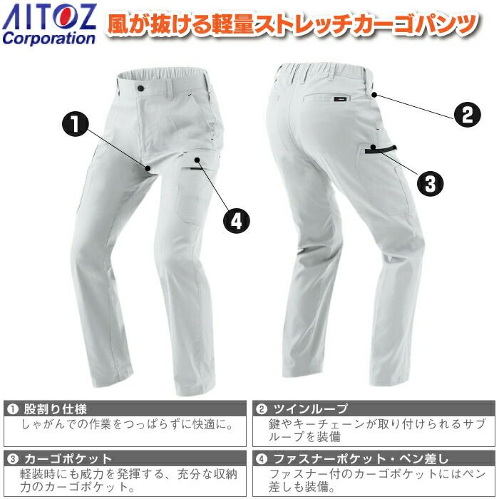 アイトス Aitoz 作業服 作業着 作業ズボン アイトス 作業服 作業着 Aitoz 春夏用 AZ-3350 ワークパンツ(ノータック)(男女兼用) 6L