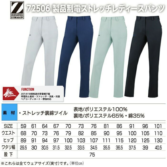 自重堂 Z-DRAGON 作業服 作業着 作業ズボン 自重堂 Z-DRAGON 作業服 72506 製品制電ストレッチレディースパンツ 81-101 秋冬用 作業着