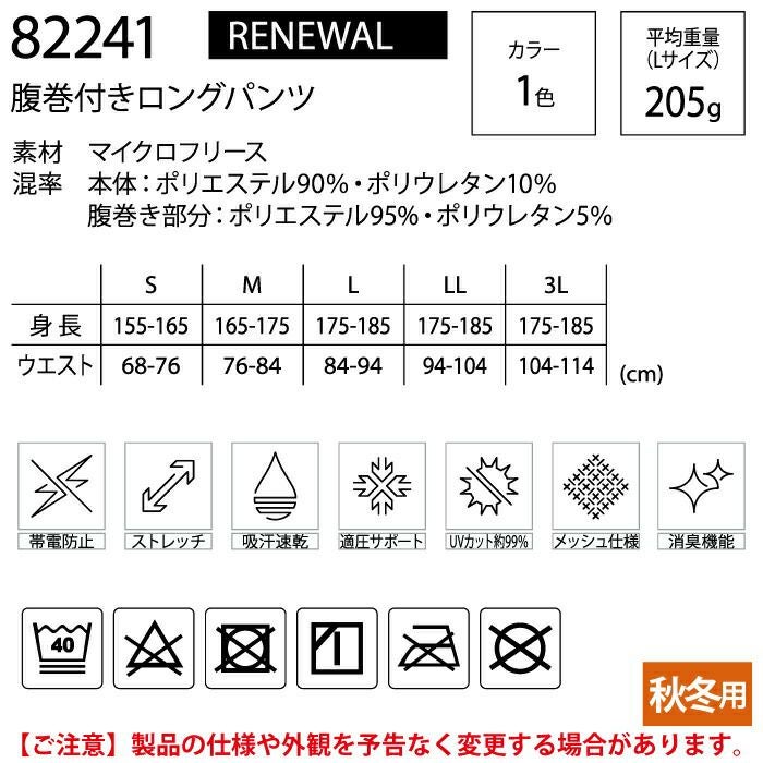 【82241 腹巻付きロングパンツ】