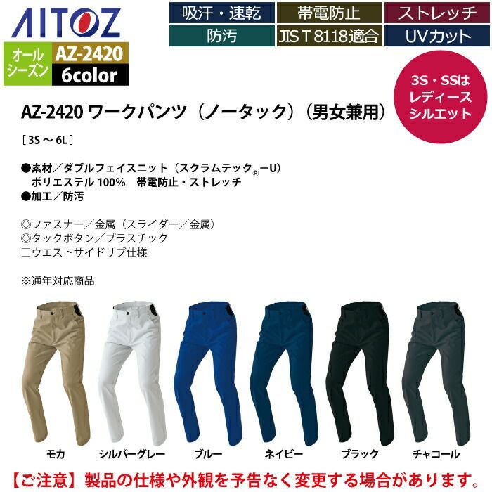 アイトス 作業服 作業着 Aitoz AZ-2420 ワークパンツ(ノータック)(男女兼用) 3L-4L