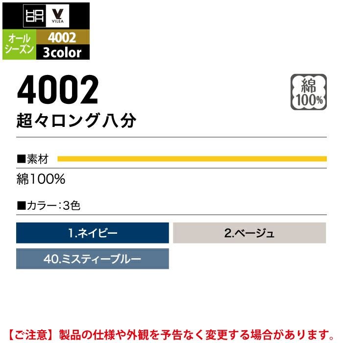 村上被服 HOOH 鳳凰 作業服 4002 超々ロング八分 4L