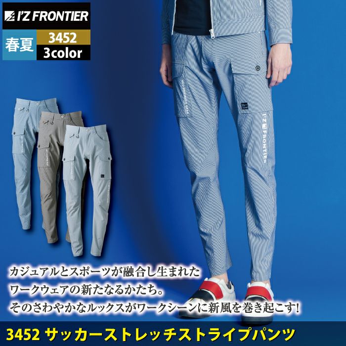 アイズフロンティア 作業服 作業ズボン 3452 サッカーストレッチストライプジョガーパンツ 73-101 春夏用