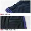 ◇機能:内側ウエストアジャスター・両脇ポケット・反射ネーム・裾リブ・ベルトループ・ウエストゴム・ニットラインテープ・ヨーク付きバックポケット