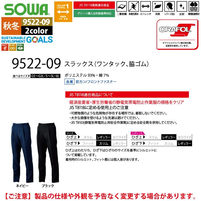 桑和 SOWA 作業服 作業着 作業ズボン 桑和 SOWA 作業服 作業ズボン 9522-09 スラックス GS-LL 秋冬用