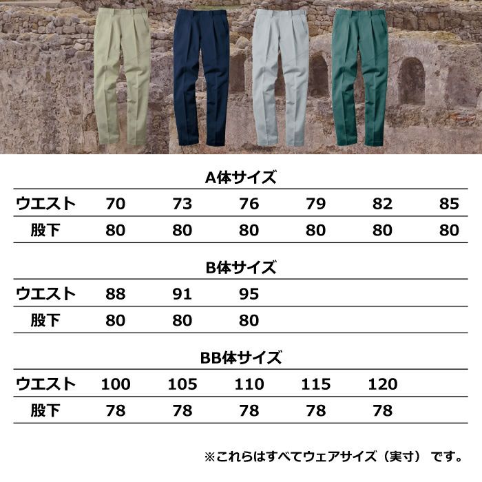 ポイント消化 コーコス 作業服 春夏用 A-763 ワンタックスラックス 88-106