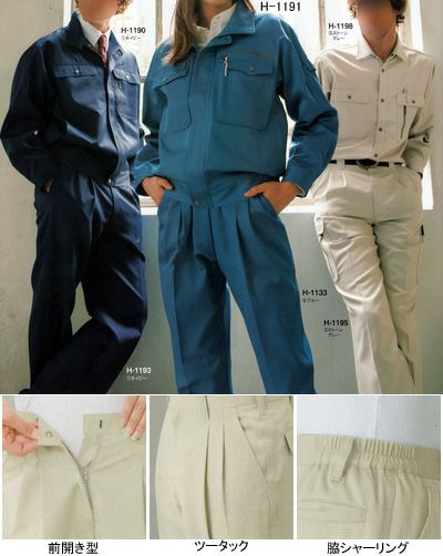 ●機能:前開き型、脇シャーリング、ツータック、再生PET繊維75%使用
