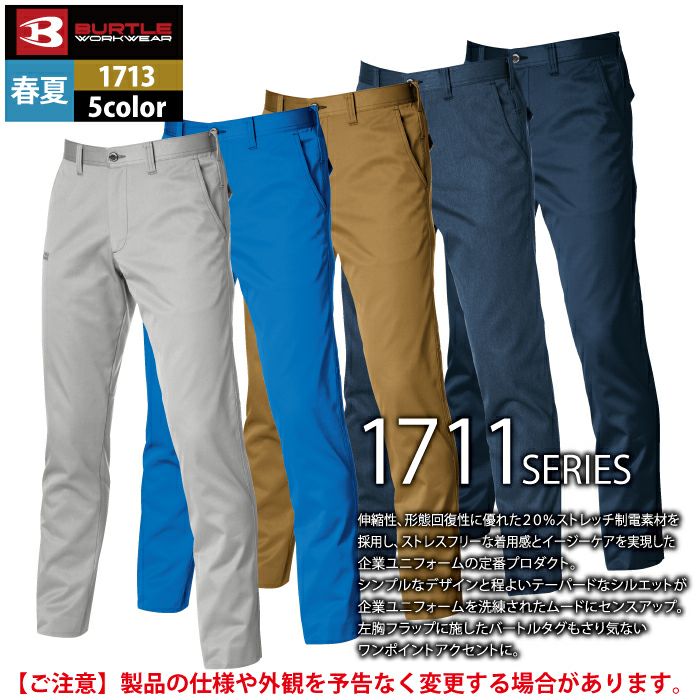 ストレッチ&テーパードシルエットの人気シリーズ バートル BURTLE 作業着 作業ズボン 1713 ユニセックスパンツ 5L 作業服 春夏 ストレッチ ユニセックス 制電 T8118 テーパード