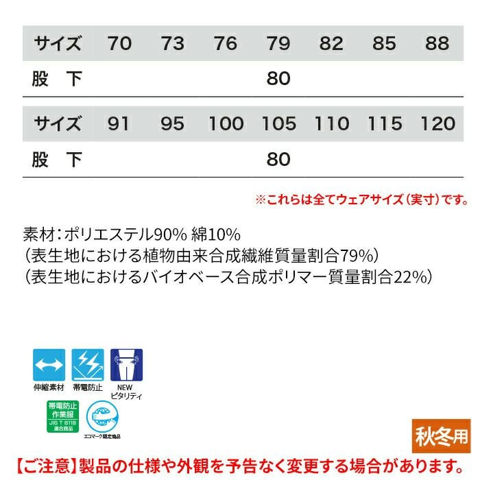 自重堂 作業服 作業着 作業ズボン 自重堂 作業服 83601 エコ製品制電ストレッチノータックパンツ 70-88 秋冬用 作業着