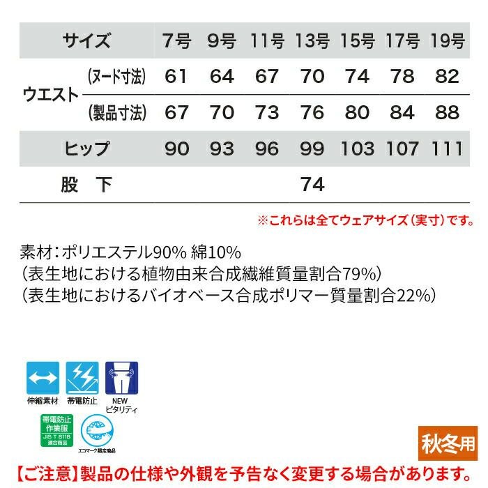 自重堂 作業服 作業着 作業ズボン 自重堂 作業服 83606 エコ製品制電ストレッチレディースパンツ 81-101 秋冬用 作業着