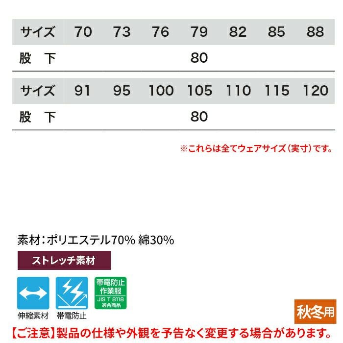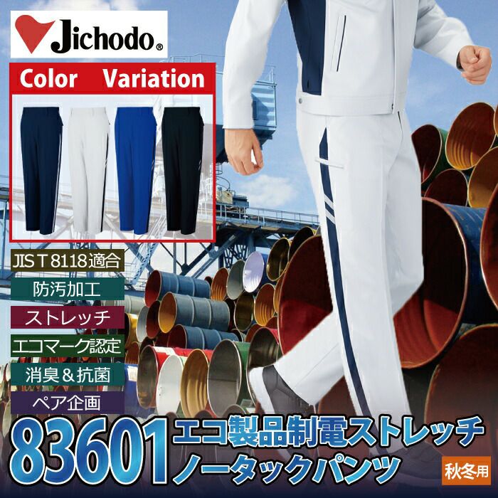 自重堂 作業服 作業着 作業ズボン 自重堂 作業服 83601 エコ製品制電ストレッチノータックパンツ 112-120 秋冬用 作業着